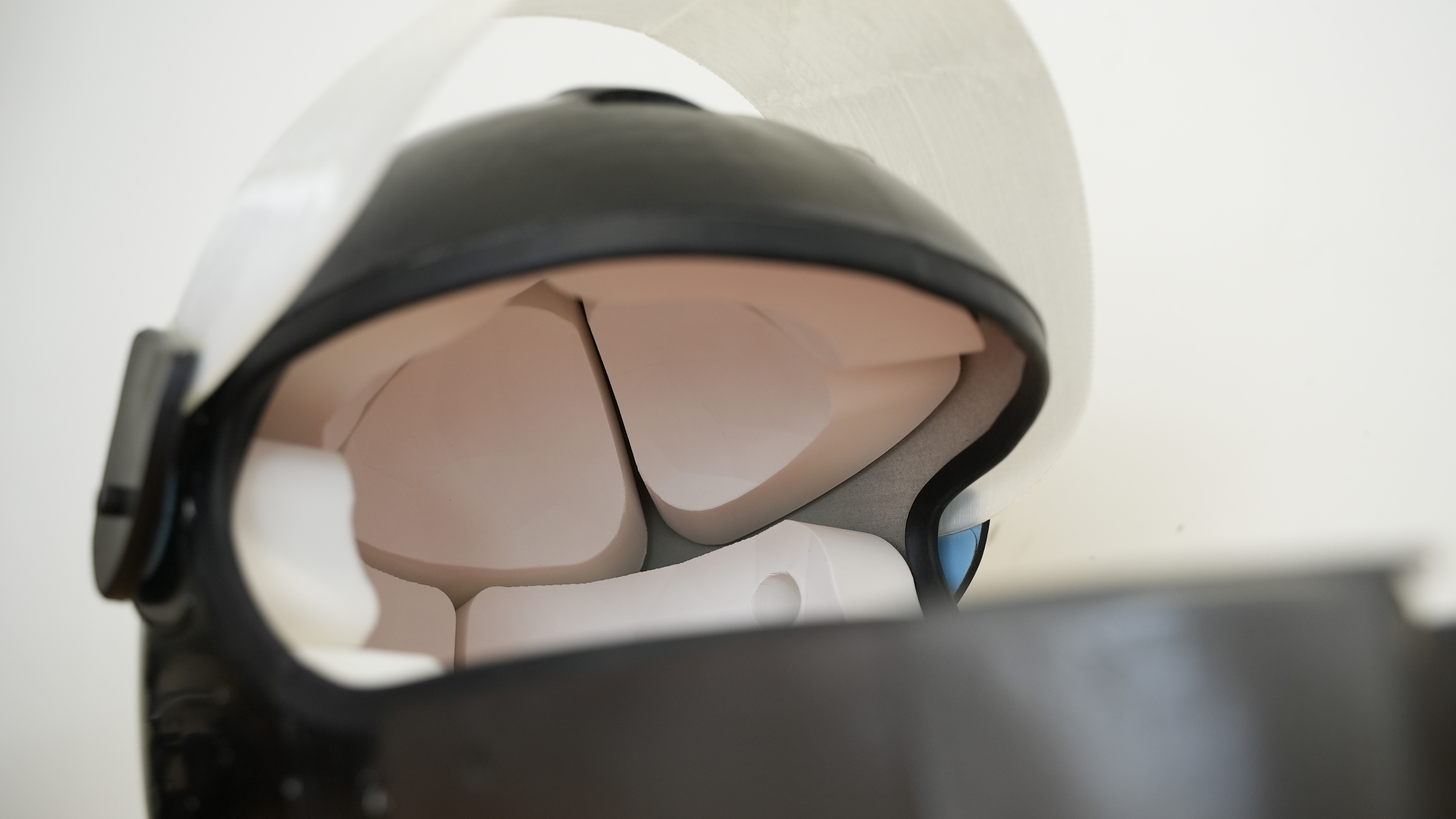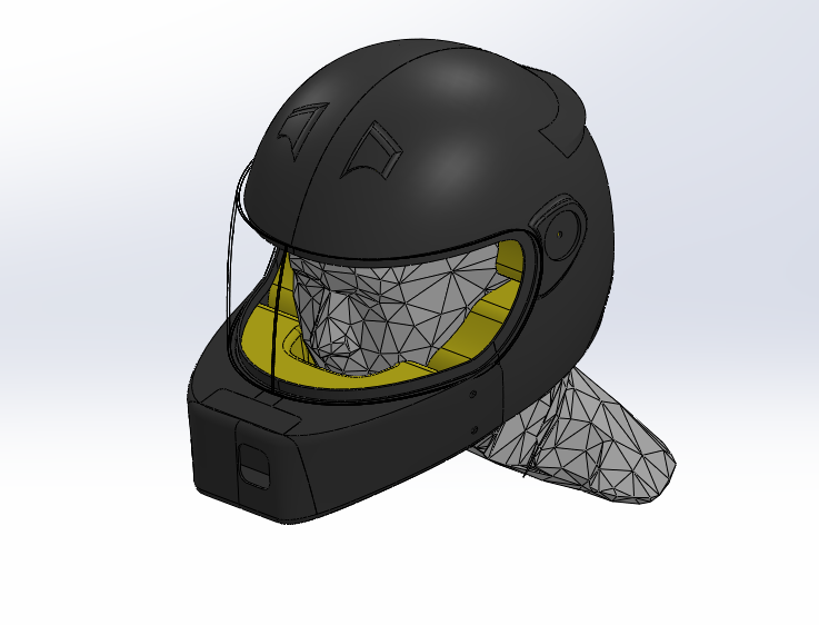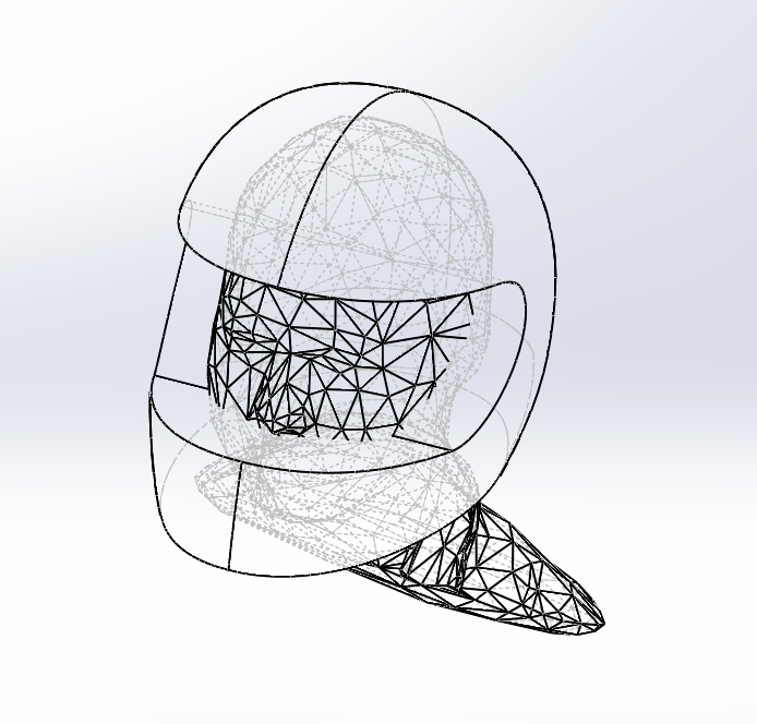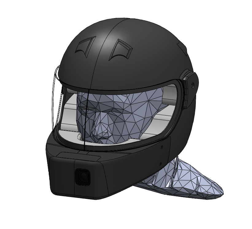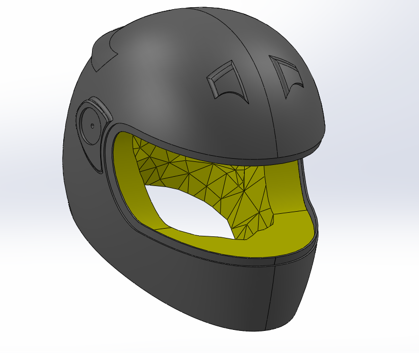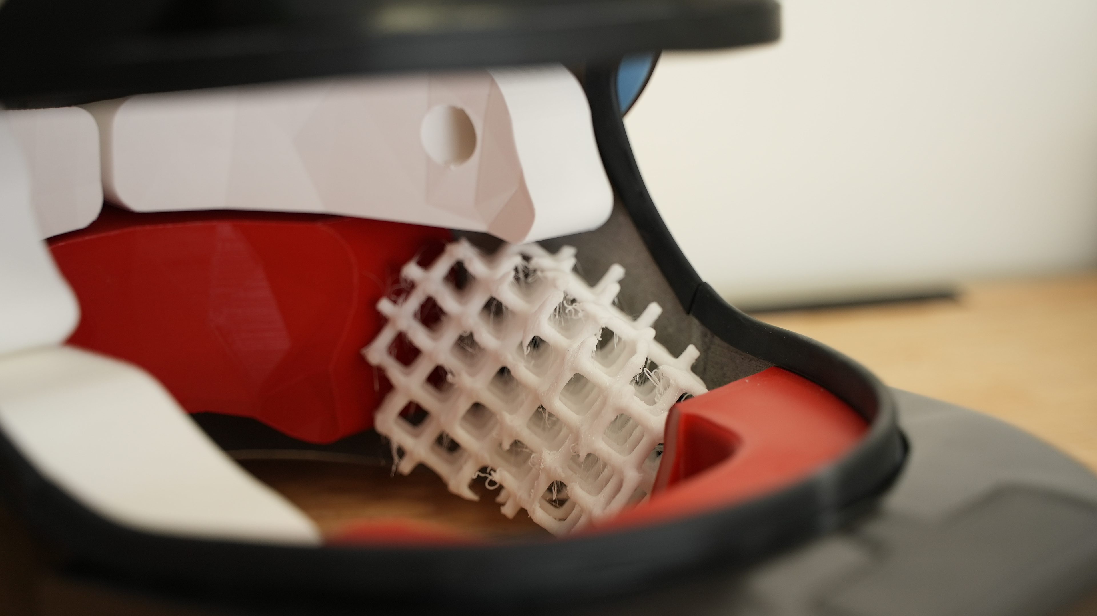 Model created in Solidworks using surface modelling techniques. 3D head scans imported and used to model internal TPU structure. Autodesk Meshmixer was used to generate lattice structures from Solidworks models.