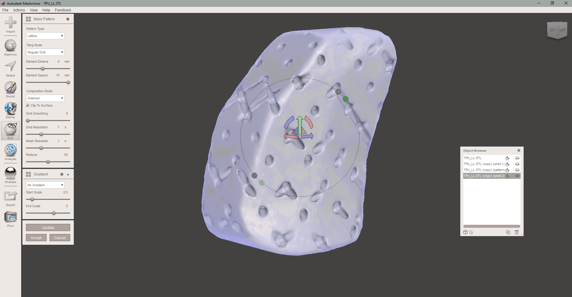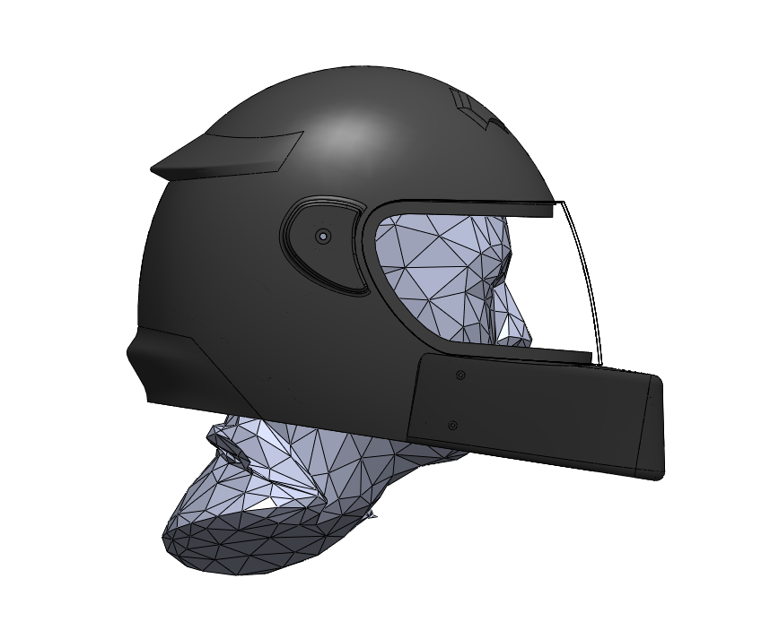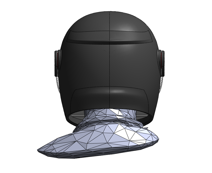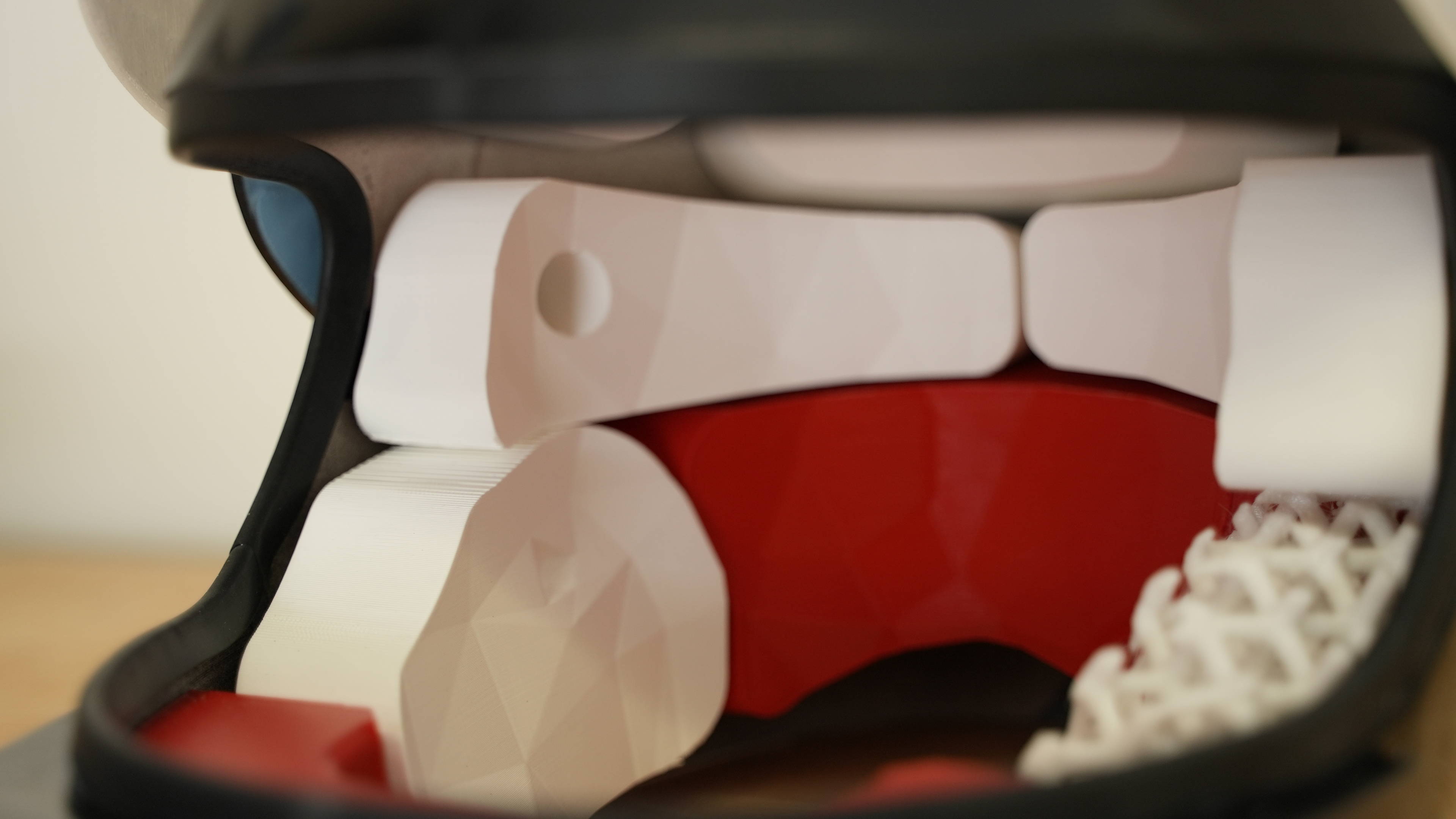 Model created in Solidworks using surface modelling techniques. 3D head scans imported and used to model internal TPU structure. Autodesk Meshmixer was used to generate lattice structures from Solidworks models.